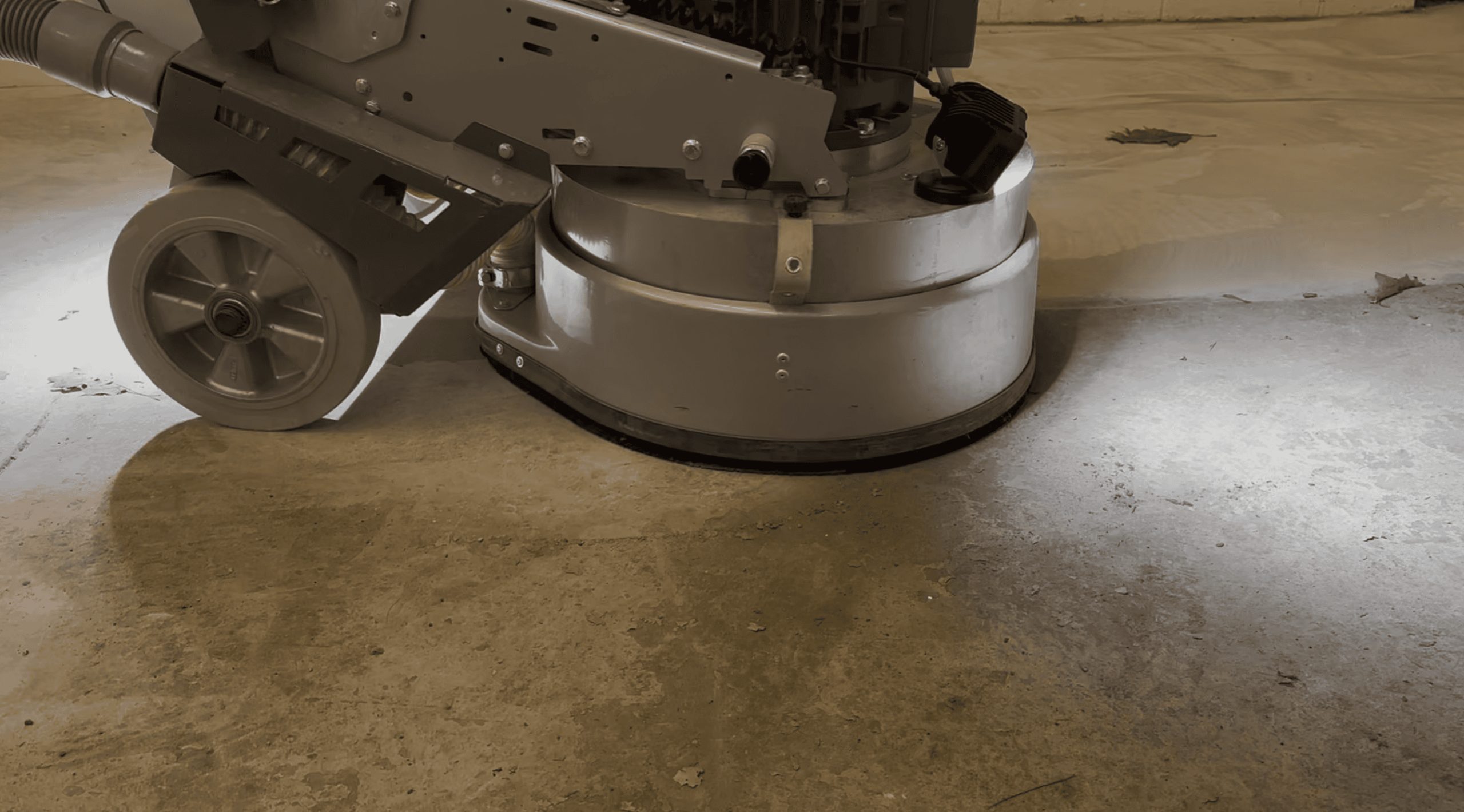We began by mechanically grinding the existing paint from the concrete surface. Paint removal can be unpredictable—some coatings release easily, while others require multiple passes. In this case, the old paint came off cleanly, allowing us to stay well ahead of schedule.